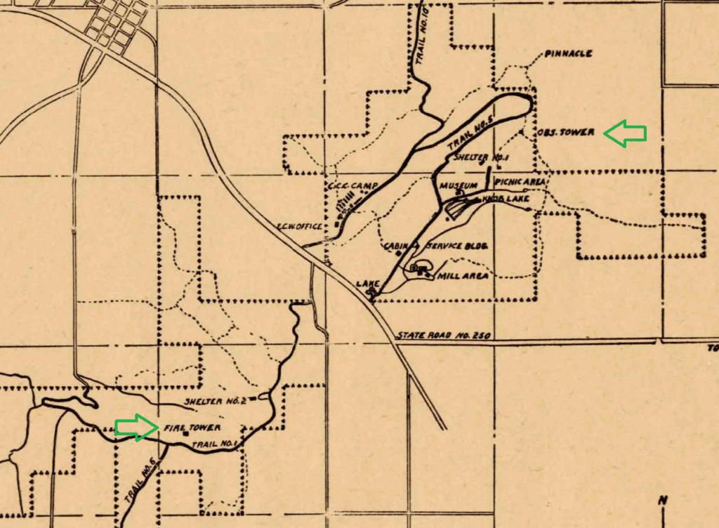 There was an original observation tower site — an old wooden tower — at a location in the northeast part of what was then Jackson County State Forest.