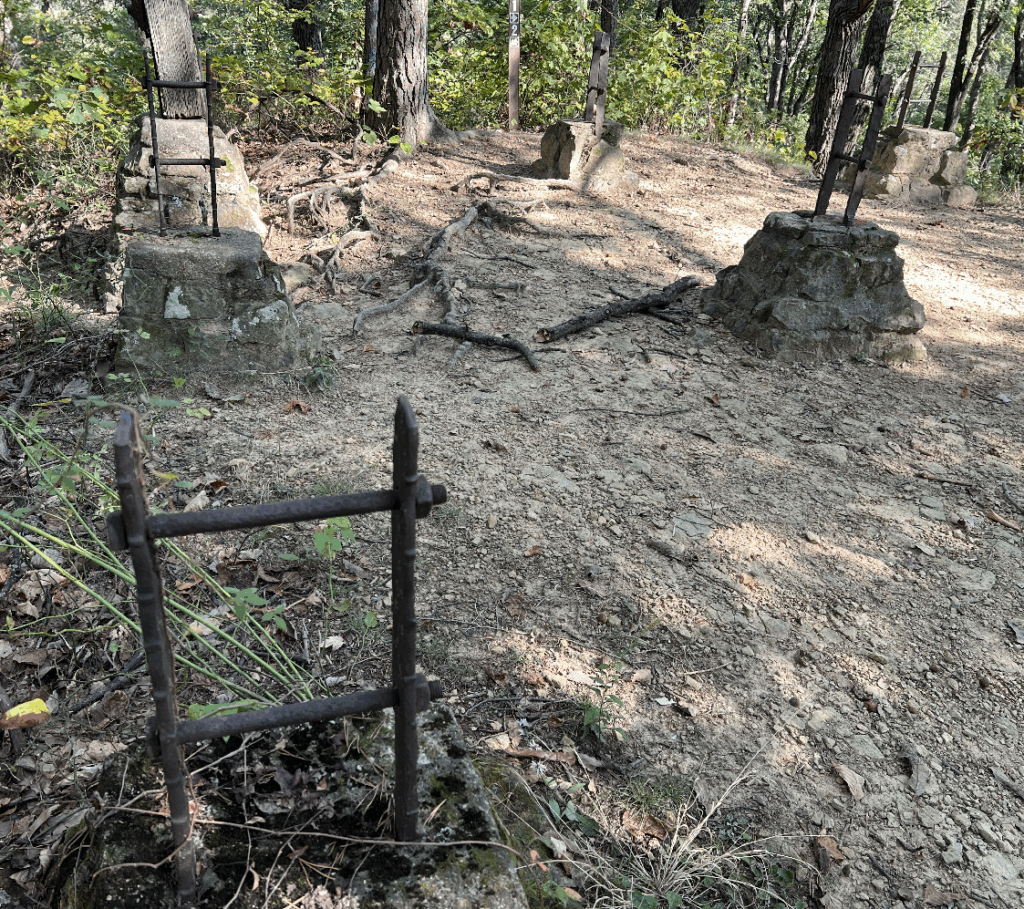 There was a previous observation tower site at the Jackson County state forest, northeast of the current Skyline tower site. It appears to have been an old wooden tower was built at the northeastern site, and then the current steel tower was built later at the southwestern site.