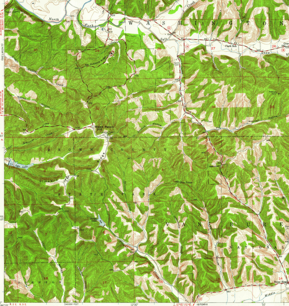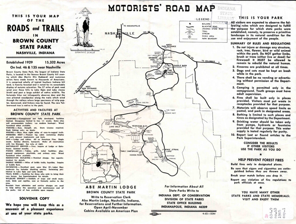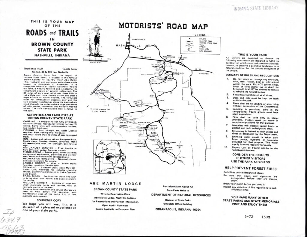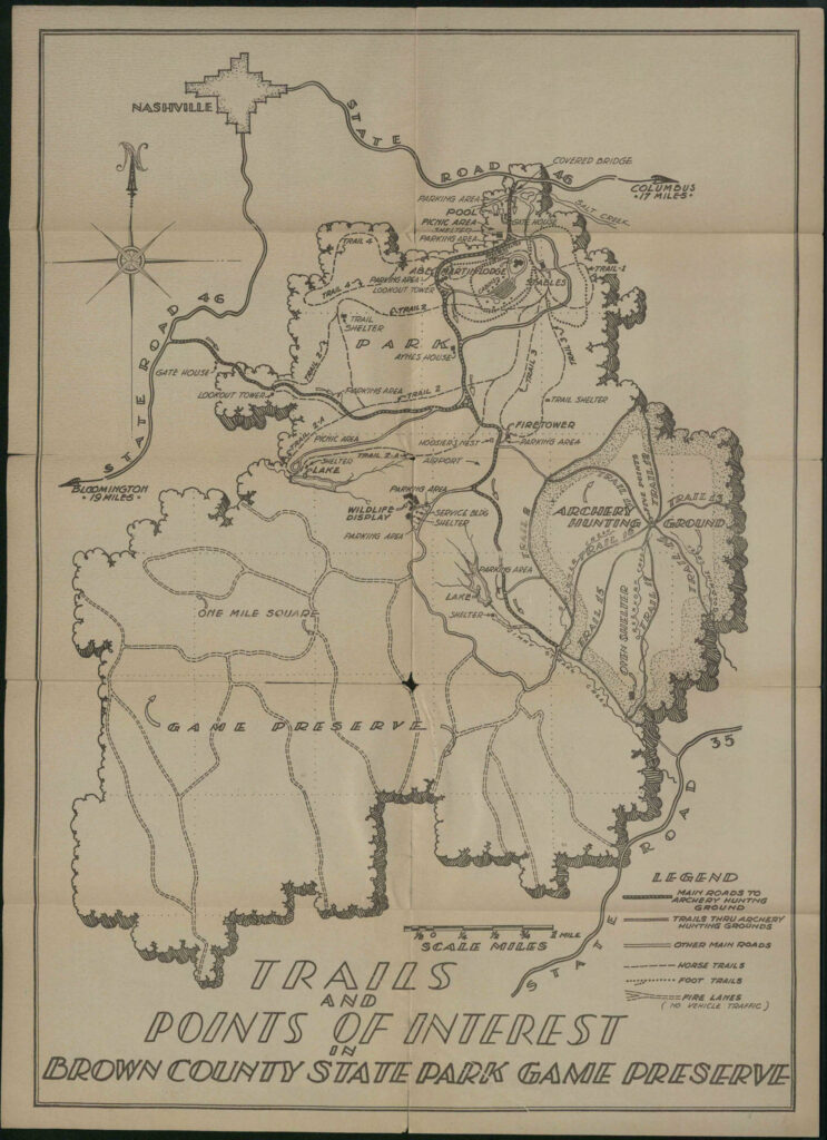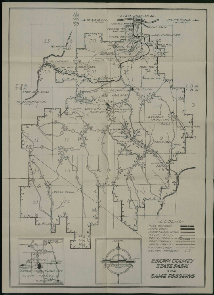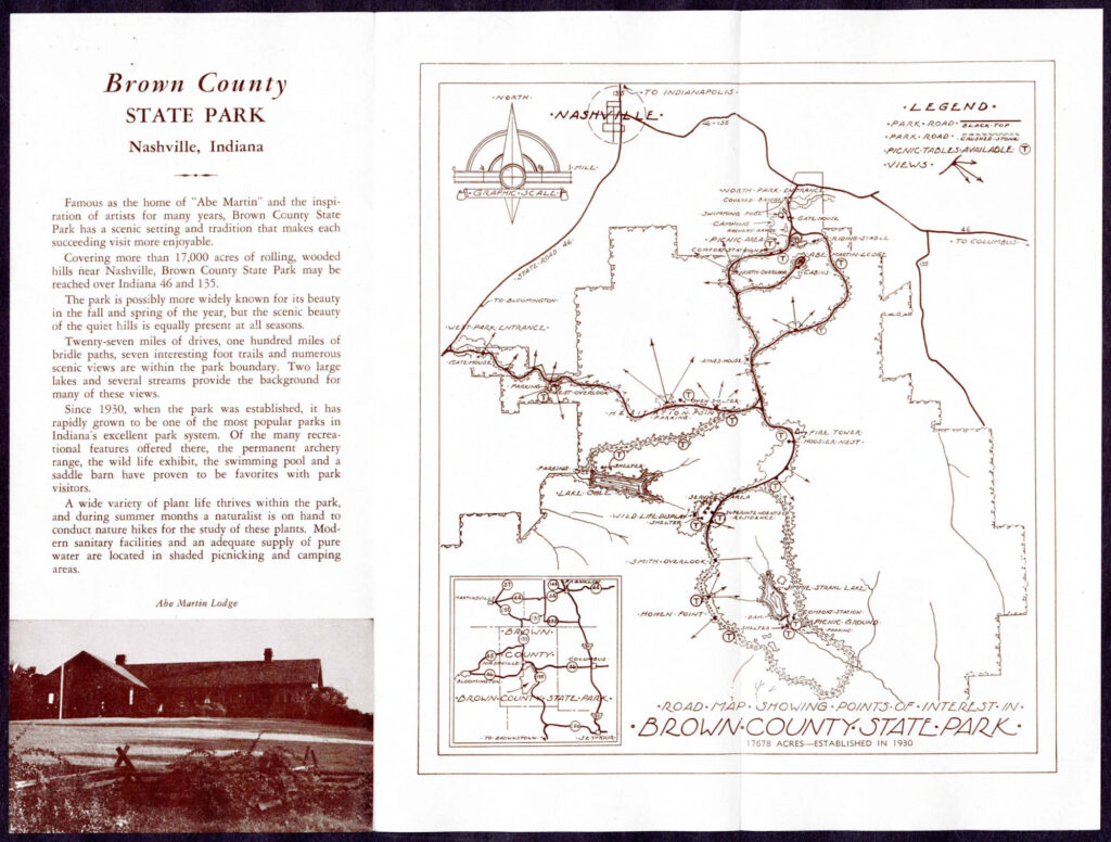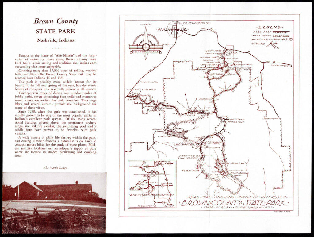 Bonus content: This page is not about fire towers. It’s a collection of trail maps and other maps of Brown County State Park and Nashville. But the Weed Patch tower at BCSP shows up in most of these maps.