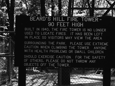 Built in 1937 according to NHLR page. Built in 1938 according to the recent state park medallion. Built in 1940, according to an old sign at the site that referred to the tower as Beard’s Hill Fire Tower.